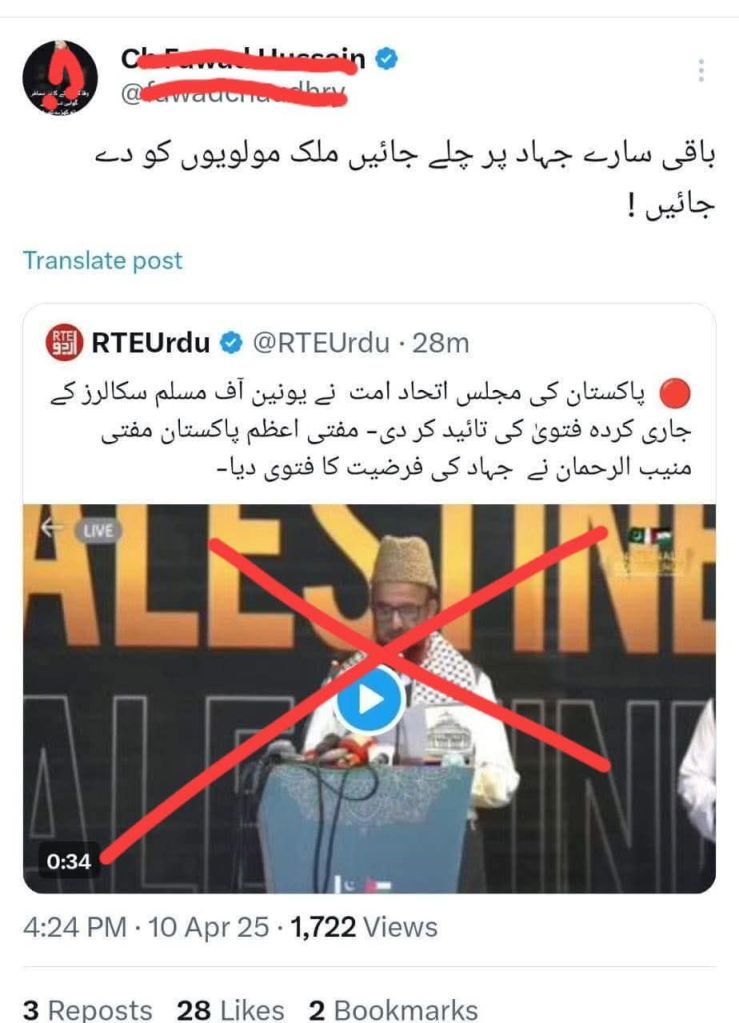 قطر میں بیٹھے سی آئی اے اور موسا د کی علماء کمیٹی کے ایجنڈے پر لبیک کہتے ہوئے نکلے ہیں تاکہ غزہ کے تباہی کیساتھ ساتھ مسلم ممالک میں عدم استحکام کی فضاء قائم کی جائے اور وہ ریاست جوکہ اپنی دفاعی صلاحیات پر کسی قسم کی سودا بازی نہیں کرسکتی اس کے ساتھ غزہ کے مظلوموں کے نام پر مذاق کیا جاسکے۔