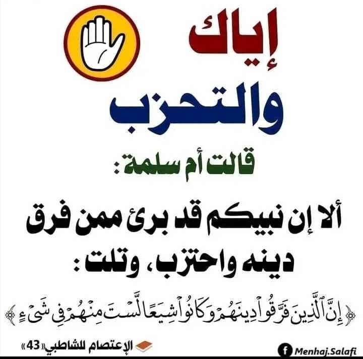 { إِنَّ ٱلَّذِینَ فَرَّقُوا۟ دِینَهُمۡ وَكَانُوا۟ شِیَعࣰا لَّسۡتَ مِنۡهُمۡ فِی شَیۡءٍۚ إِنَّمَاۤ أَمۡرُهُمۡ إِلَى ٱللَّهِ ثُمَّ یُنَبِّئُهُم بِمَا كَانُوا۟ یَفۡعَلُونَ }